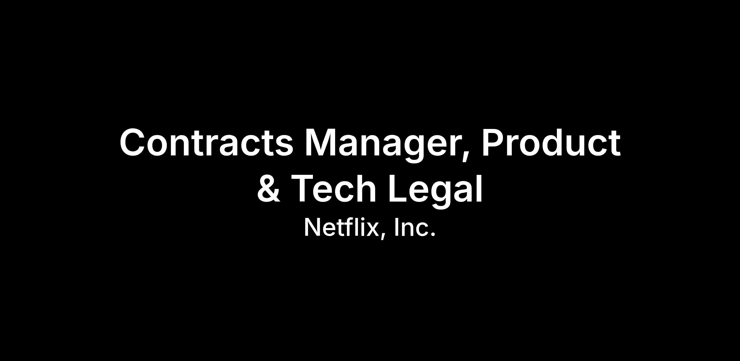 The Product & Tech Contract Management Legal team at Netflix is a team of contract and project managers who provide efficient, effective, and risk-calibrated deal guidance and contract negotiation support to the corporate, studio, games, and product organizations. We’re looking for an experienced Contracts Manager to join the team based in our Los Gatos or Los Angeles office.