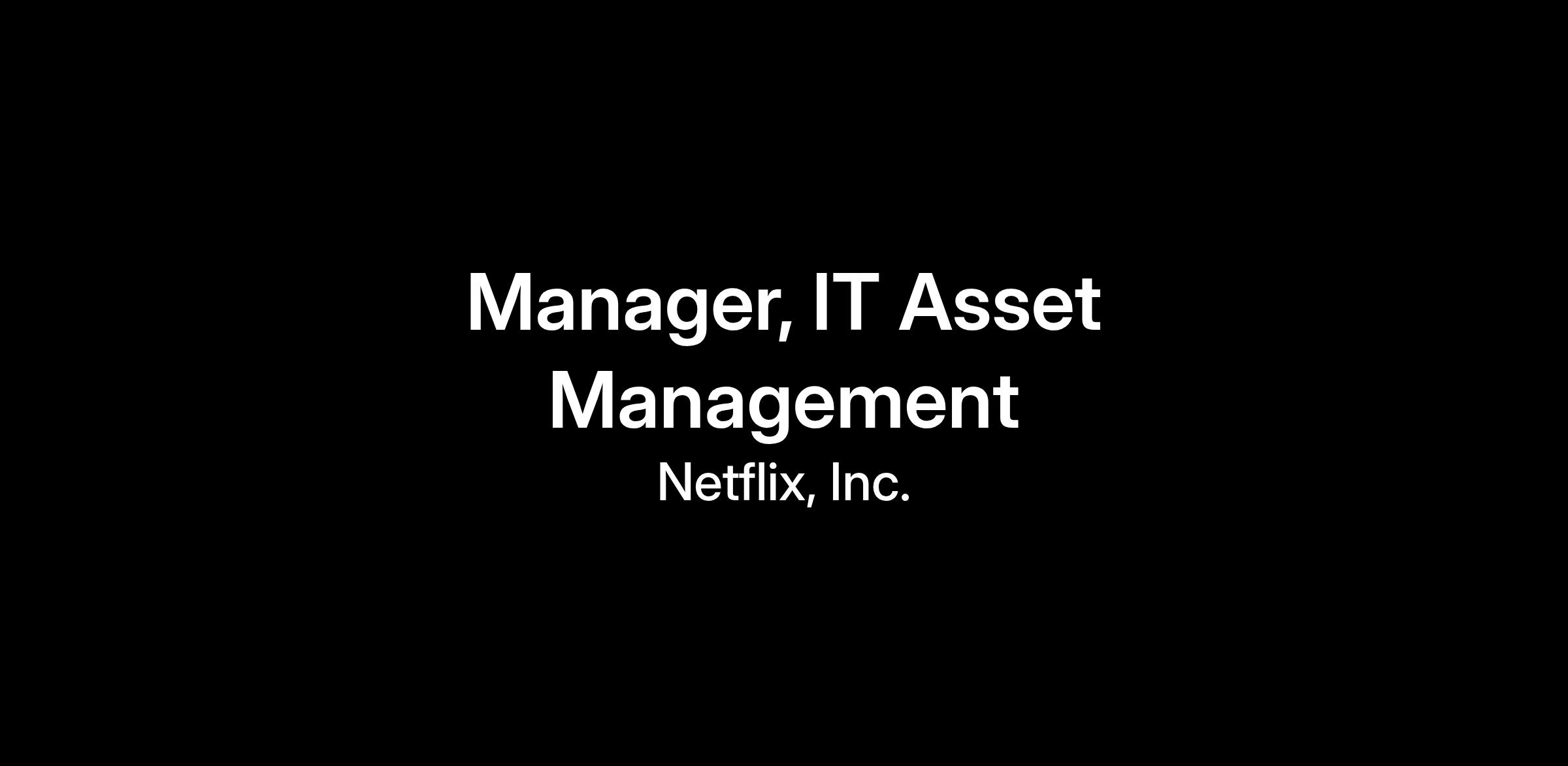 We're looking for an experienced and visionary Manager of IT Asset Management to join our team. In this role, you’ll shape and execute strategies to optimize the lifecycle management of all IT assets at Netflix. You’ll define the business vision for IT Asset Management (ITAM), drive alignment across global teams, and partner with technology leaders to deliver world-class solutions.