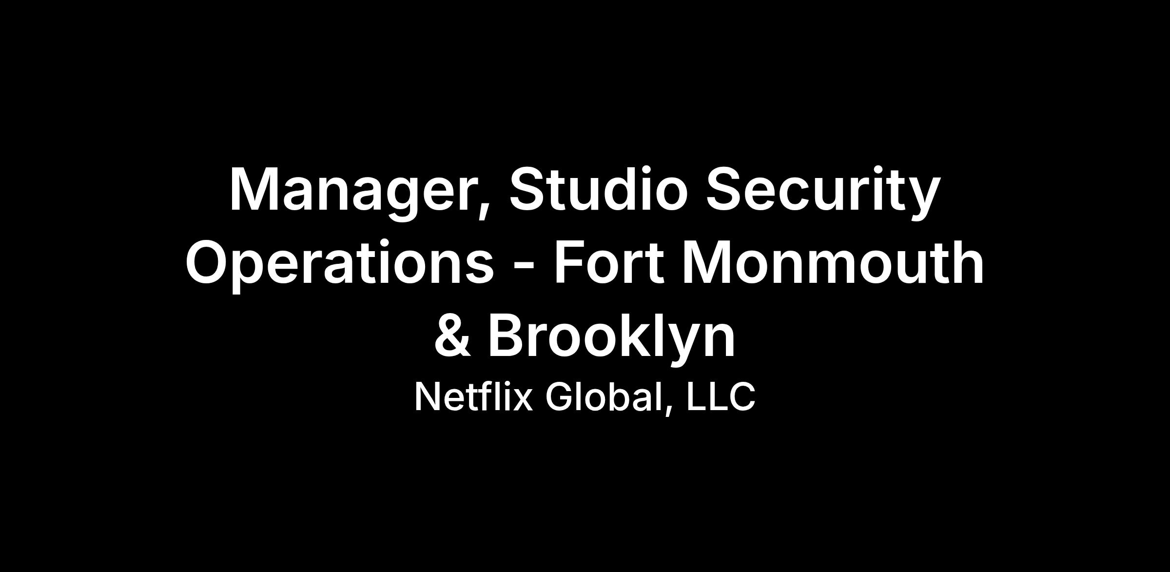 We are seeking an accomplished Studio Security Operations Manager to oversee facility operations at Netflix Studios Fort Monmouth (FTM), our new East Coast flagship hub, as well as Netflix Studios Brooklyn (NSB). This role offers a unique opportunity to join Netflix as we continue to redefine global entertainment and share compelling stories with audiences worldwide.