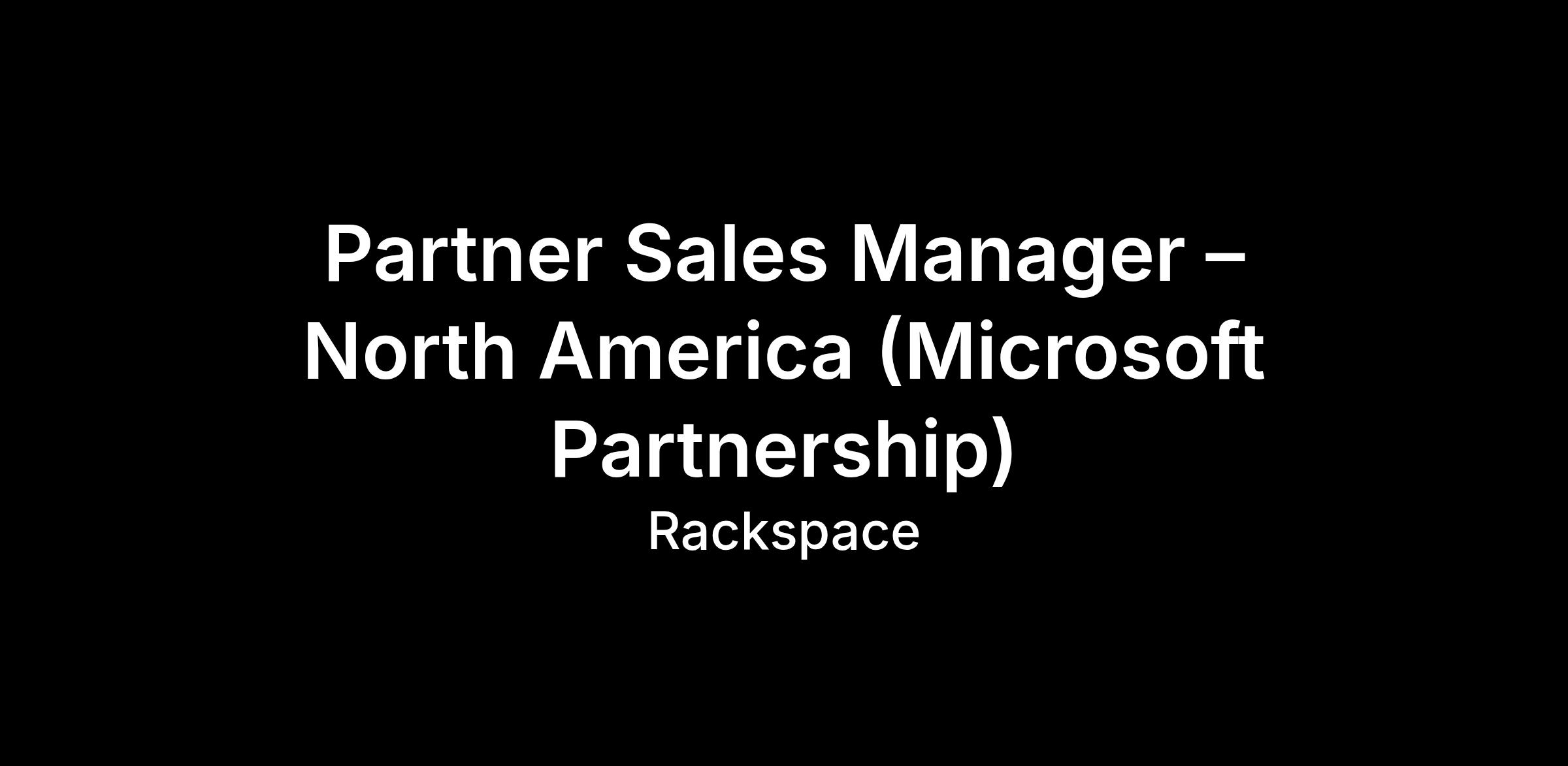 The Partner Sales Manager – North America (Microsoft Partnership) at Rackspace is the go-to leader for driving co-sell and joint sales success across the Americas. You will own the relationship with Microsoft sales and partner teams, turning alliance strategy into real pipeline, deals, and revenue growth. This role is all about connecting Rackspace solutions with Microsoft’s ecosystem, aligning teams, and executing joint motions that deliver measurable business impact across North America.