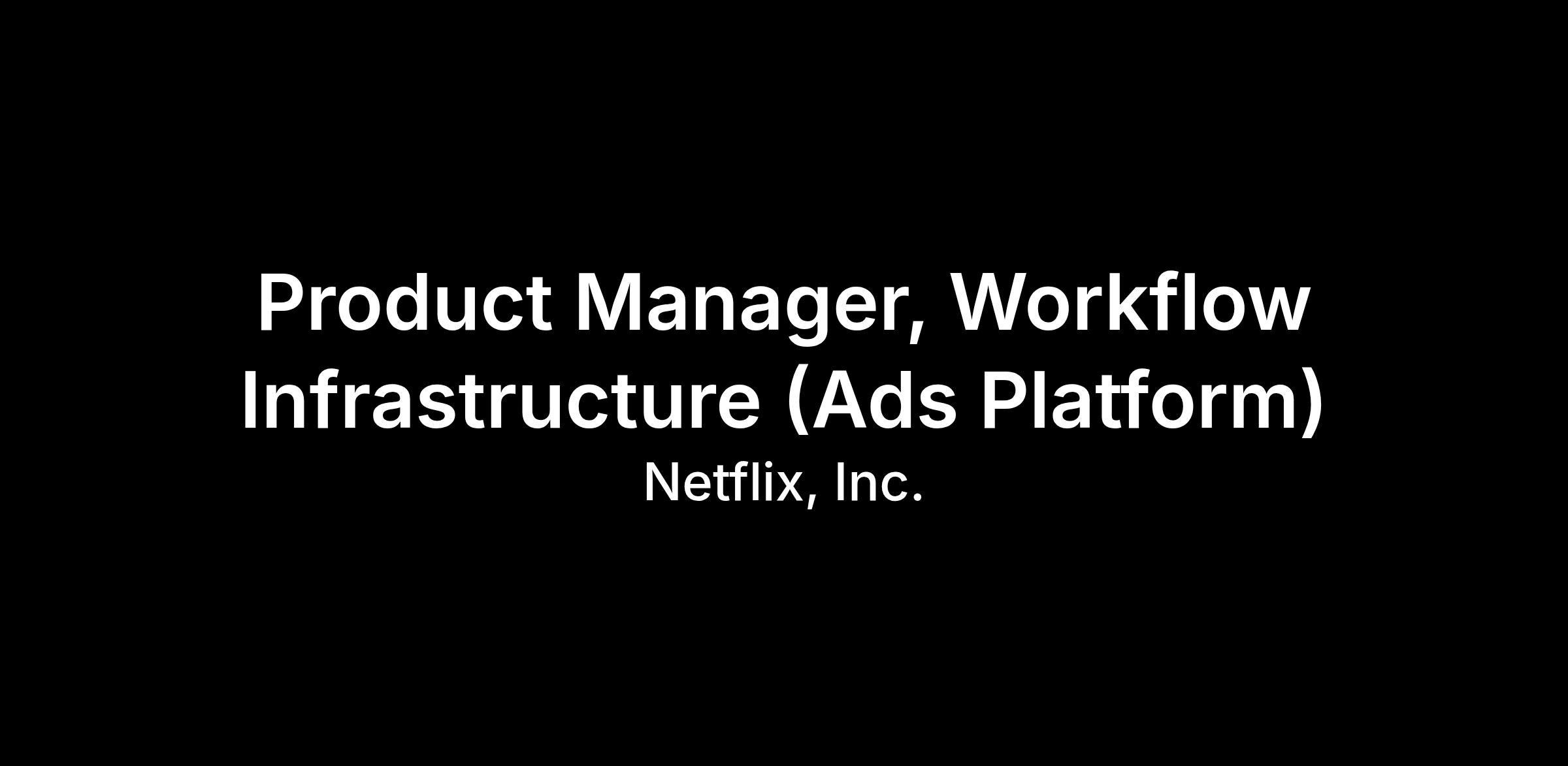 Define and own the end-to-end product vision for a shared Workflow Infrastructure that spans every Netflix Ad Suite surface.