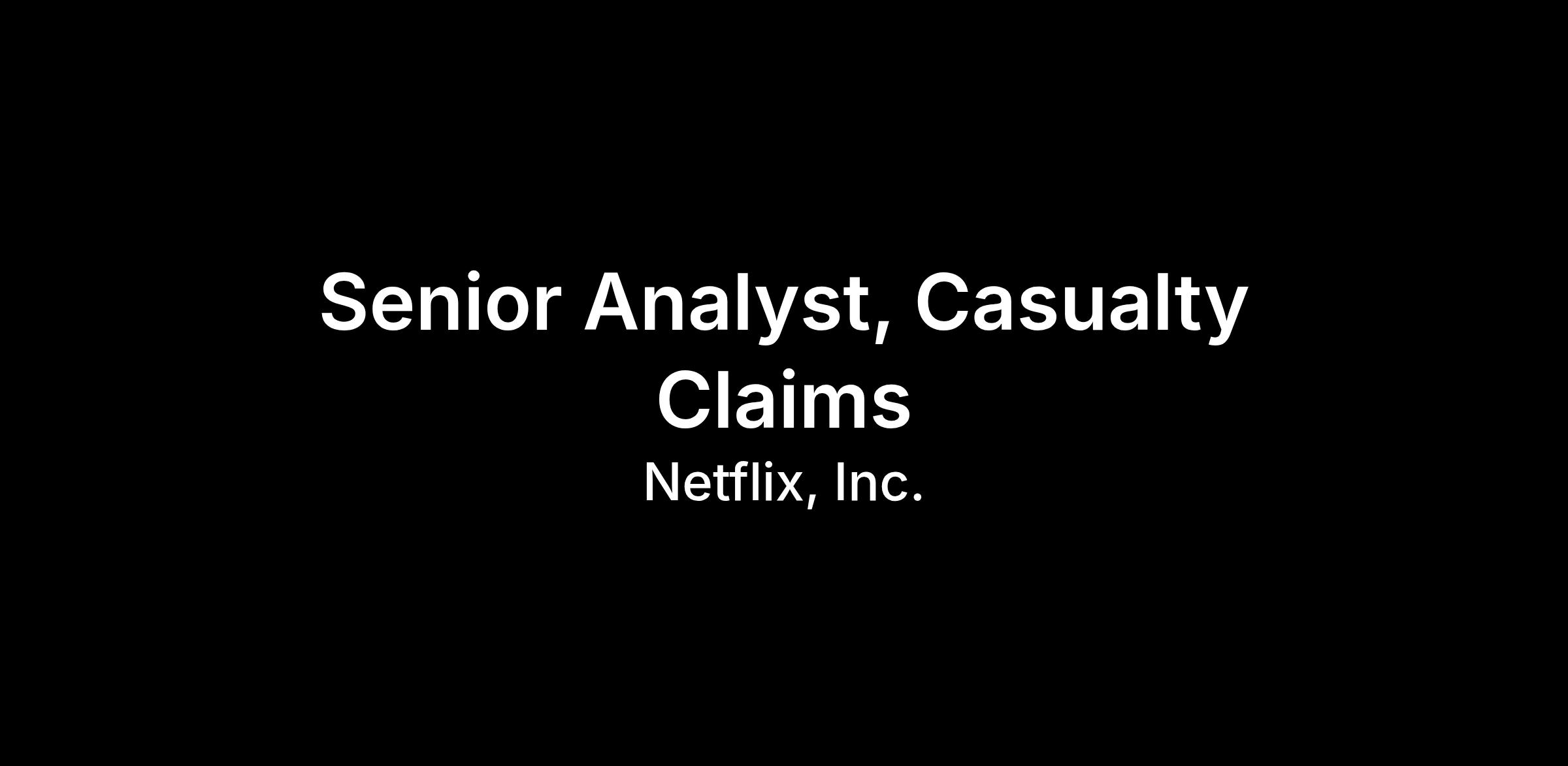 This role reports to a Senior Manager within Risk Management and joins a technical risk team responsible for managing Netflix's insured and self-funded claims. The ideal candidate is a collaborative team player eager to “roll up their sleeves” and do hands-on work. They possess the ability to quickly build trust and effectively manage risk by working collaboratively with internal and external stakeholders.
