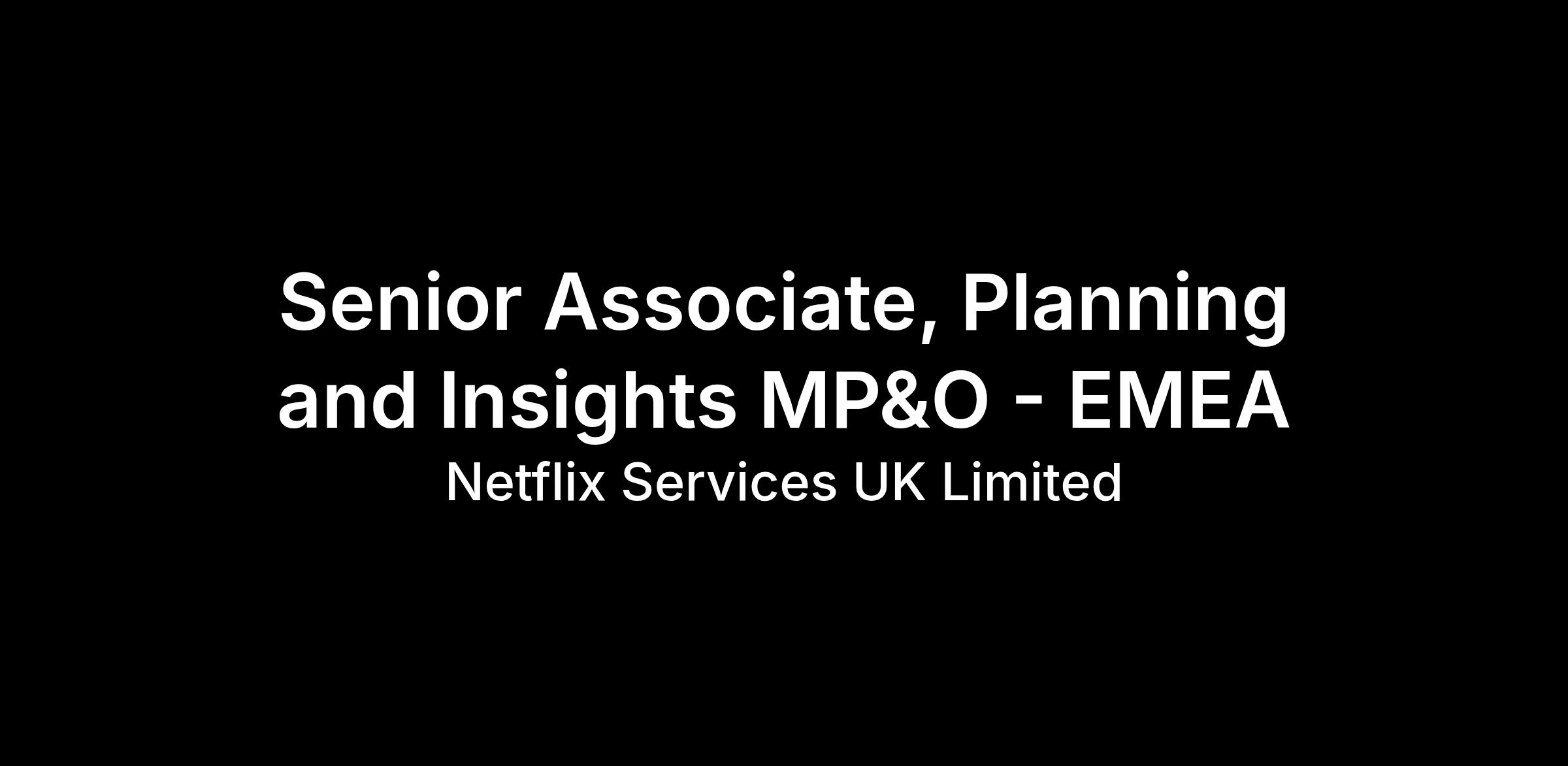 This position reports to the Manager of Planning and Insights EMEA and is based in London.