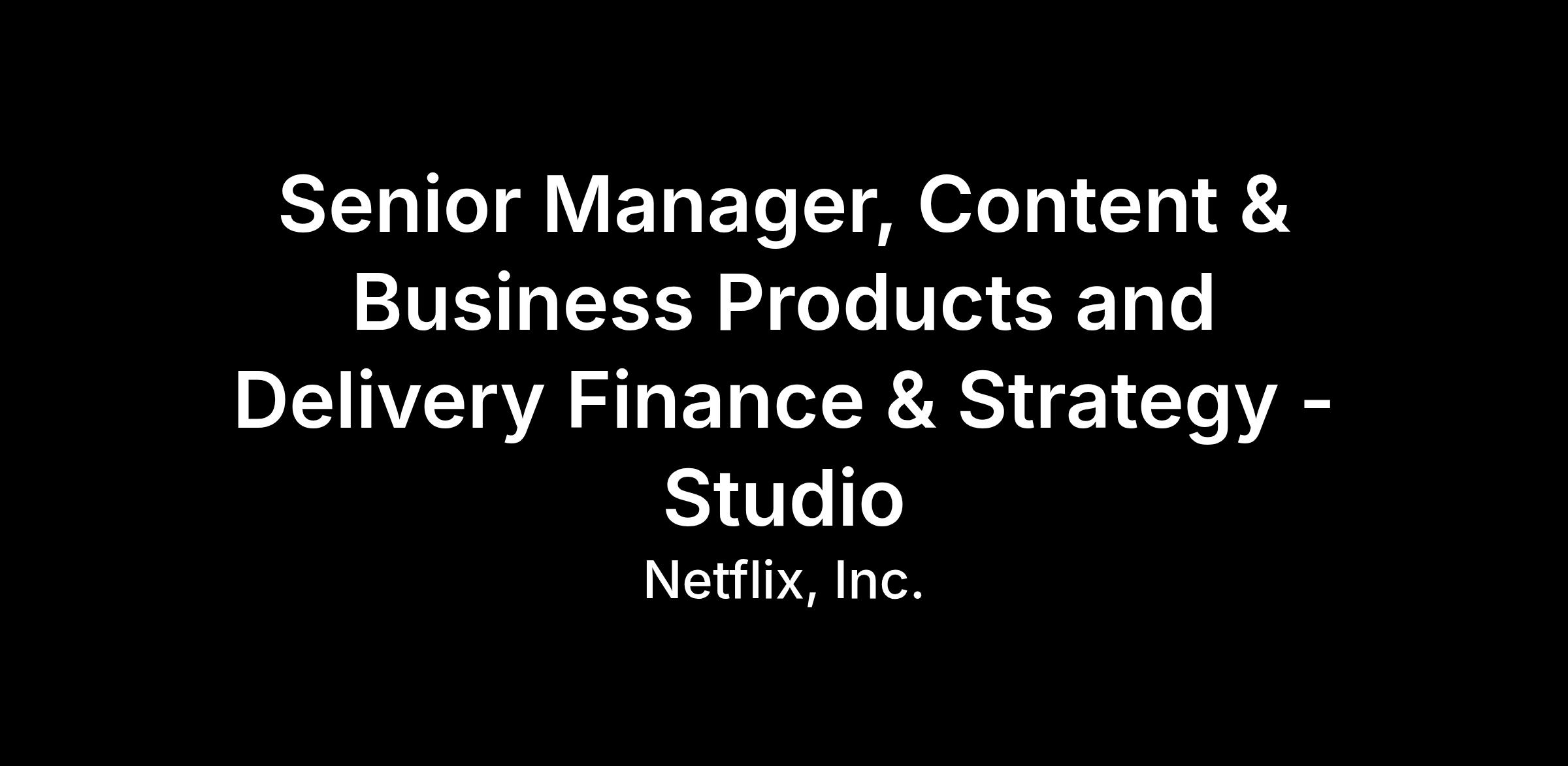 Netflix is revolutionizing the media and entertainment industry. Underpinning this revolution are groundbreaking efforts in product and infrastructure - Content and Business Products and Streaming Delivery - that catalyze Netflix’s success. This role will be part of the Content & Business Product and Delivery Finance & Strategy (F&S) team, focusing on analyses relating to the product and infrastructure support for the creation and movement of media assets from source within Physical Production to launch on the Netflix service.