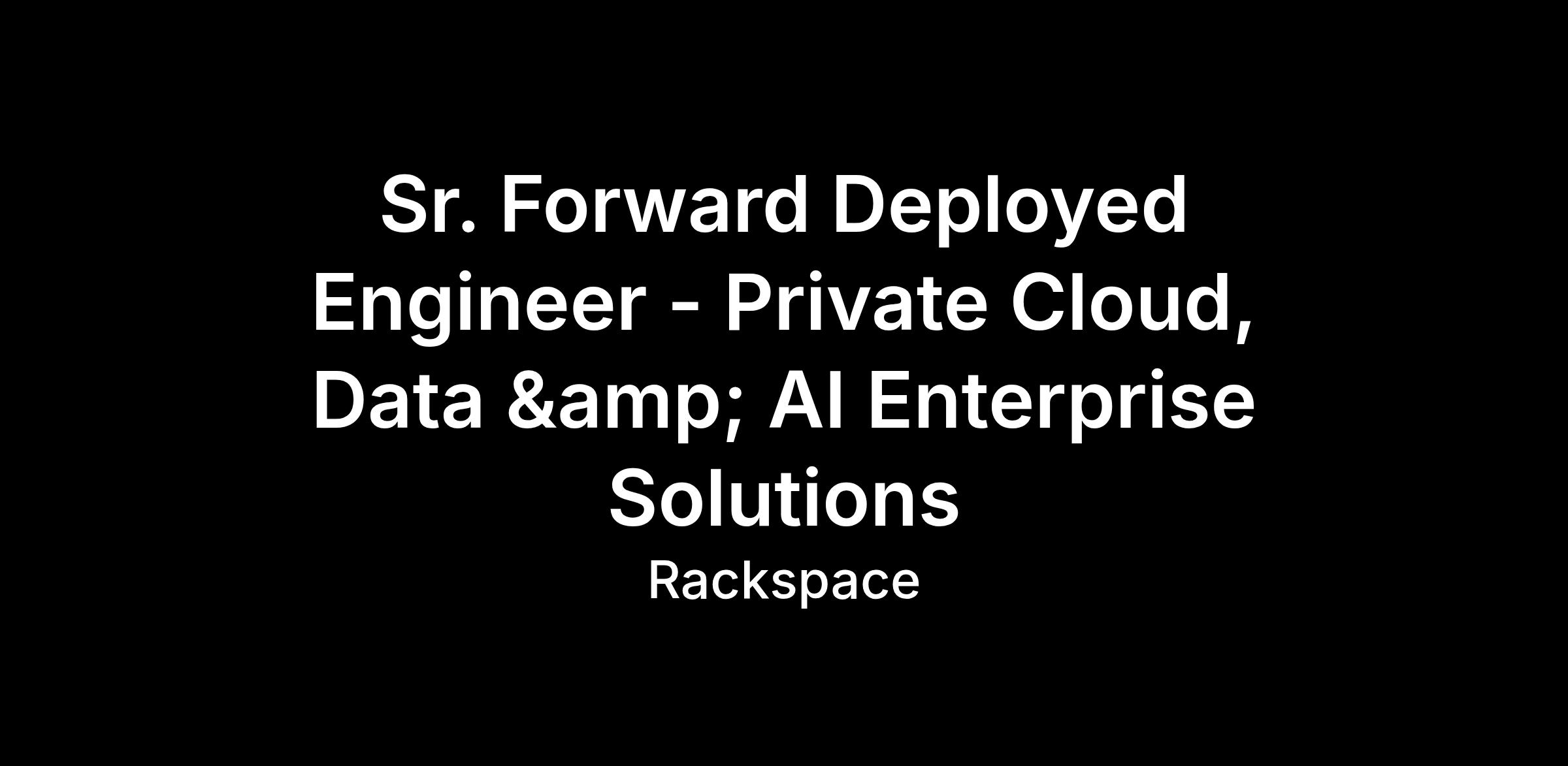As a Sr. Forward Deployed Engineer (Sr. FDE) at Rackspace Technology, you will be embedded directly with our most strategic enterprise customers to architect, build, and deploy high-impact AI solutions. This role combines deep technical engineering with business acumen, customer empathy, and end-to-end solution ownership. You become the technical bridge between Rackspace’s AI platform capabilities and the customer’s most pressing business challenges. You will own the full solution lifecycle from problem discovery and rapid prototyping through production deployment and continuous optimization while feeding field insights back to our product and platform engineering teams.